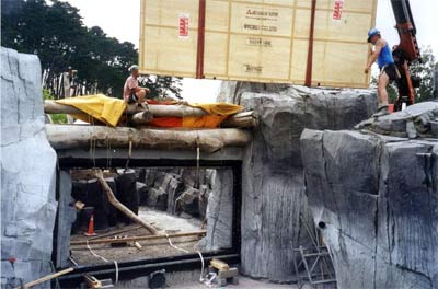 Design and detailing of new 5.4m x 2.8m x 140mm thick underwater acrylic viewing window for new Sea Lion pool (approx 800m³ pool), and advised on concrete design and construction methods. Designed in 1999. Construction in 2000-01.